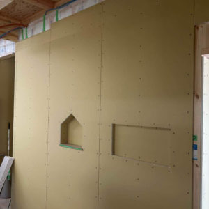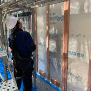 壁石膏ボード及び、外壁サイディングの施工状況です。