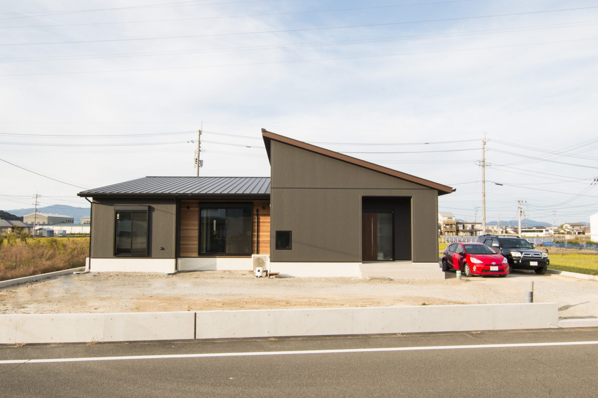 勾配が高い屋根と低い屋根で変化をつけた外観。 外構ができるのがとても楽しみです。