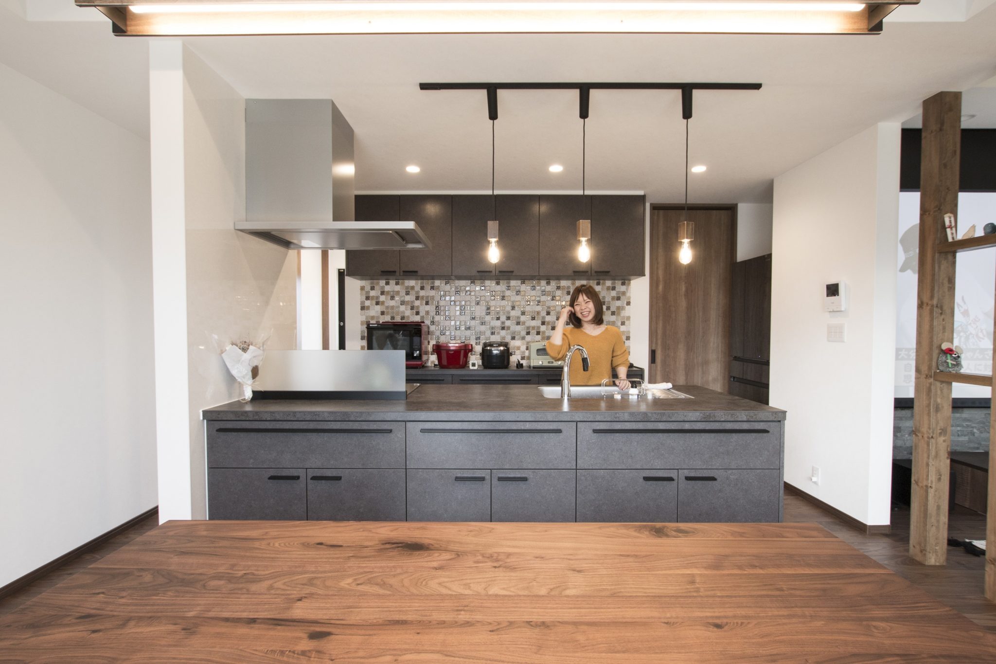 奥様がこだわられたのはキッチン。モデルハウスで見つけた『リシェル』を入れたいと熱望し、採用しました。アイランドキッチンで回遊性もあり、便利。日々の家事が楽しくなりそうですね。