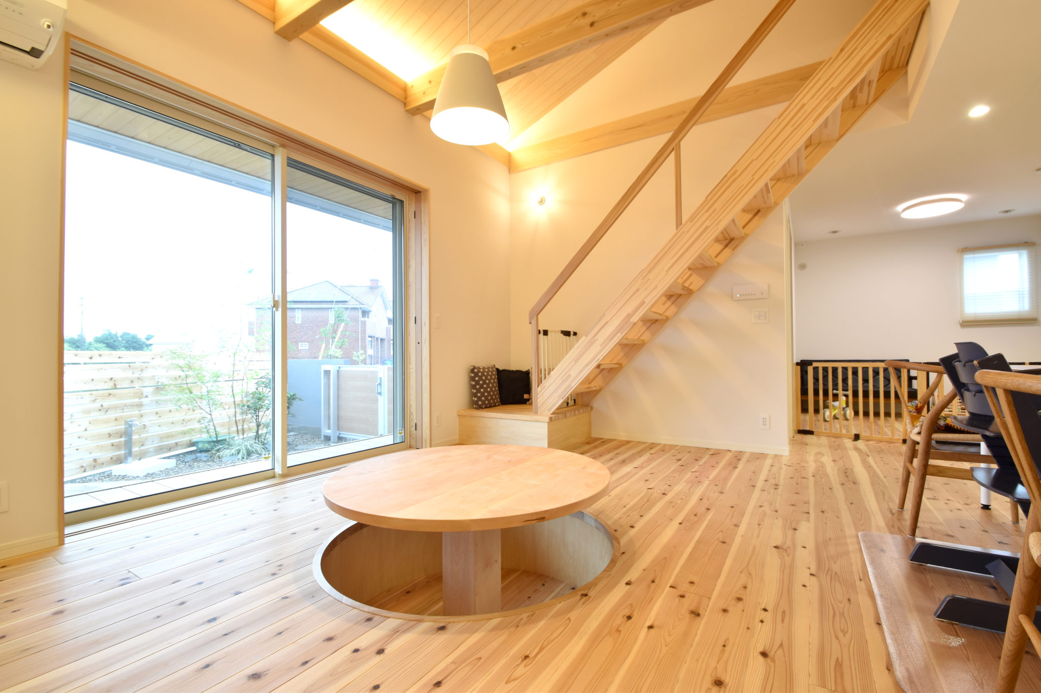 ある宿に宿泊したことがきっかけで、掘りごたつの心地良さを体験し、家を建てるなら絶対に取り入れたい決めていたそう。また、掘りごたつの形状を円にすることで限られたスペースを有効活用することができ、5~6人座っても窮屈さを感じず過ごすことができます。