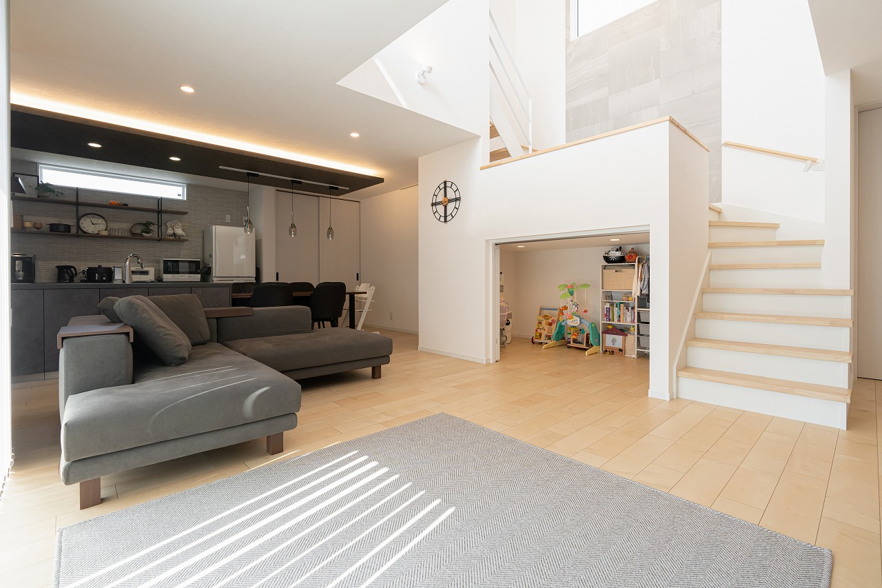 フルフラット設計など、子育てのしやすさも考えつくされたお家が完成しました。