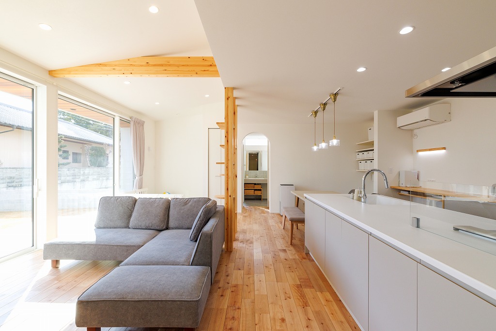 玄関→LDK→洗面所へと一直線でつながる動線はお施主様のこだわり。帰宅後も自然と洗面台へ足が向いて、手洗いなどを済ませられます。