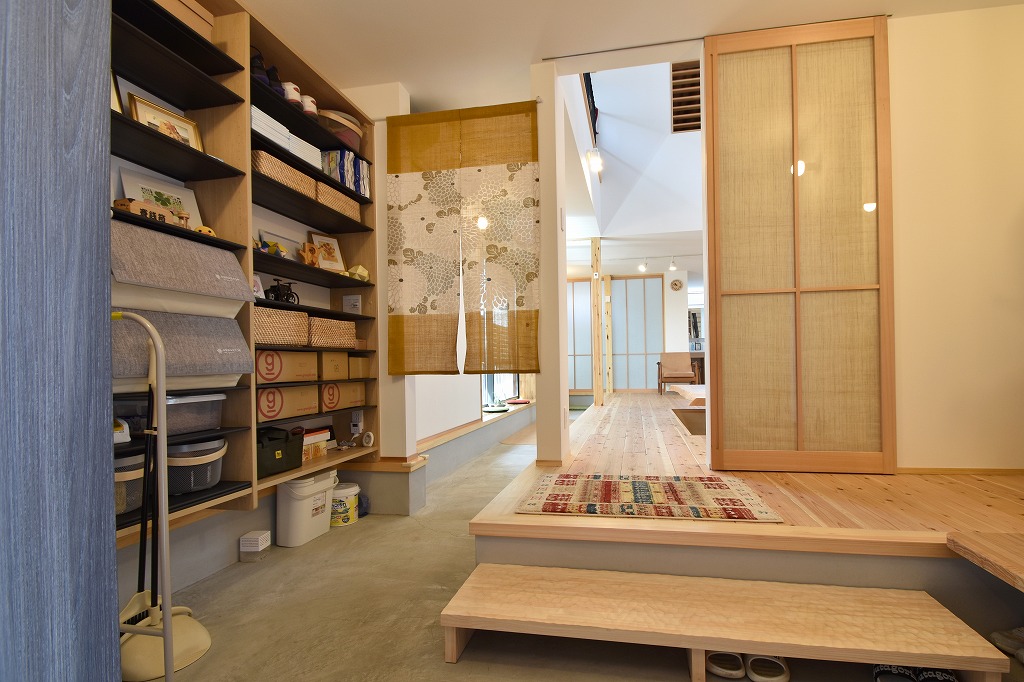 「愛犬が室内で過ごせるように」という想いから、LDKまで続く広い玄関土間を採用。家族みんなが一年中快適に過ごせるように考え抜かれた設計になっています。