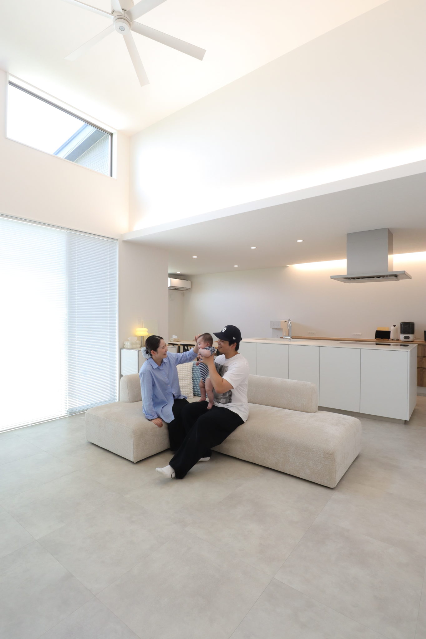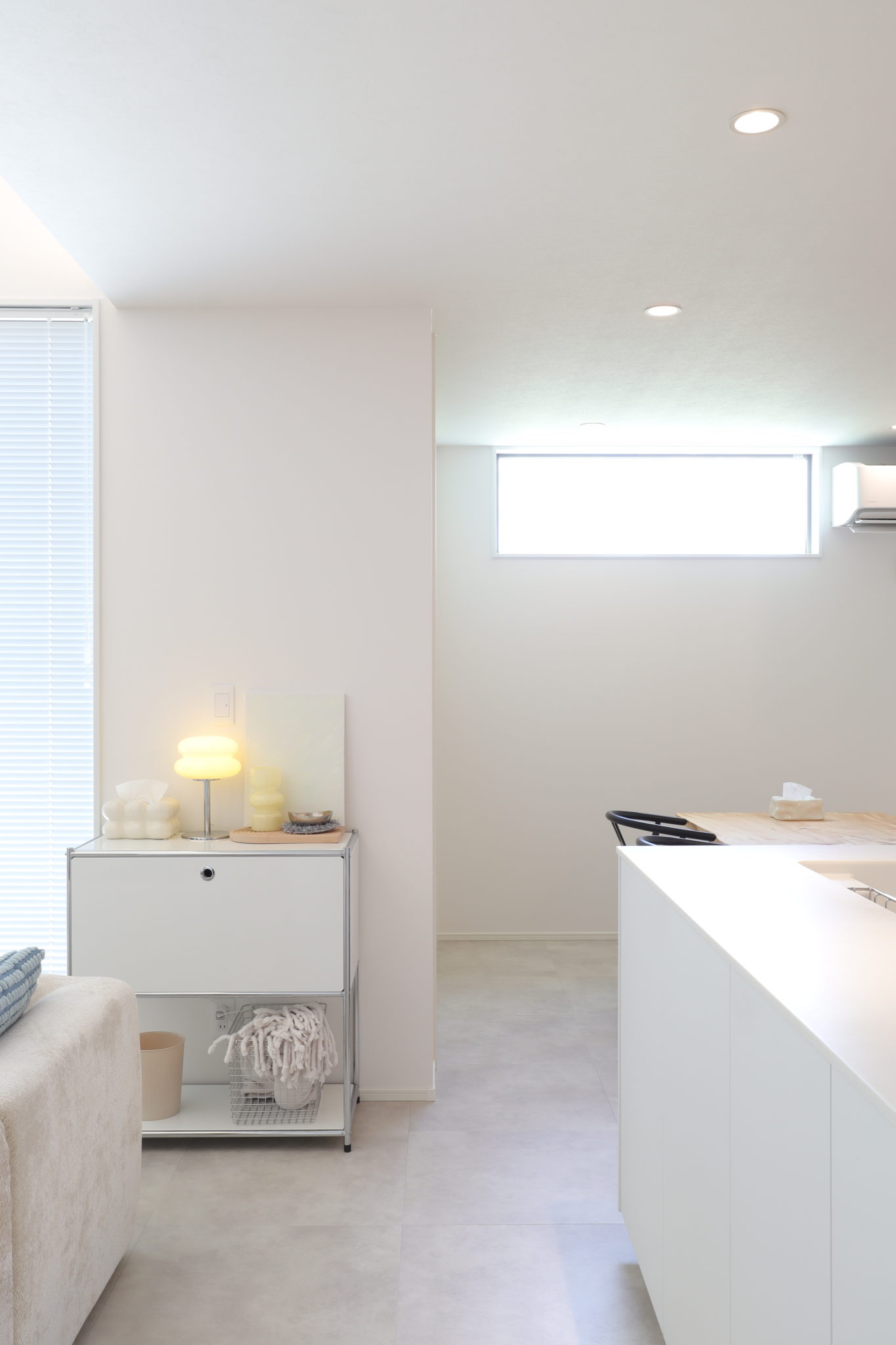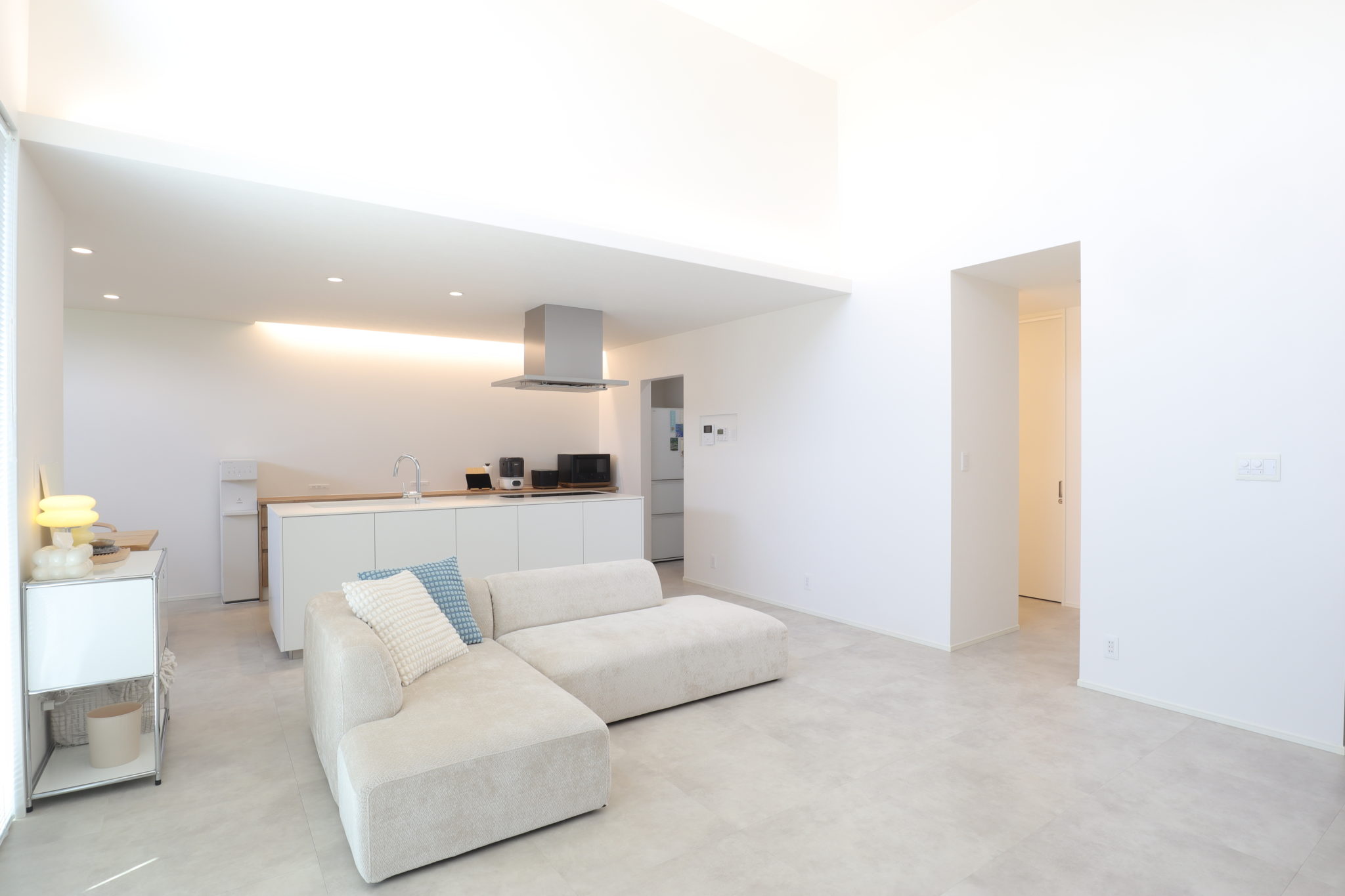 また、ホワイトインテリアでコーディネートしたLDKは、吹抜けや高窓をもうけたことでより開放的で洗練された空間に仕上がりました。