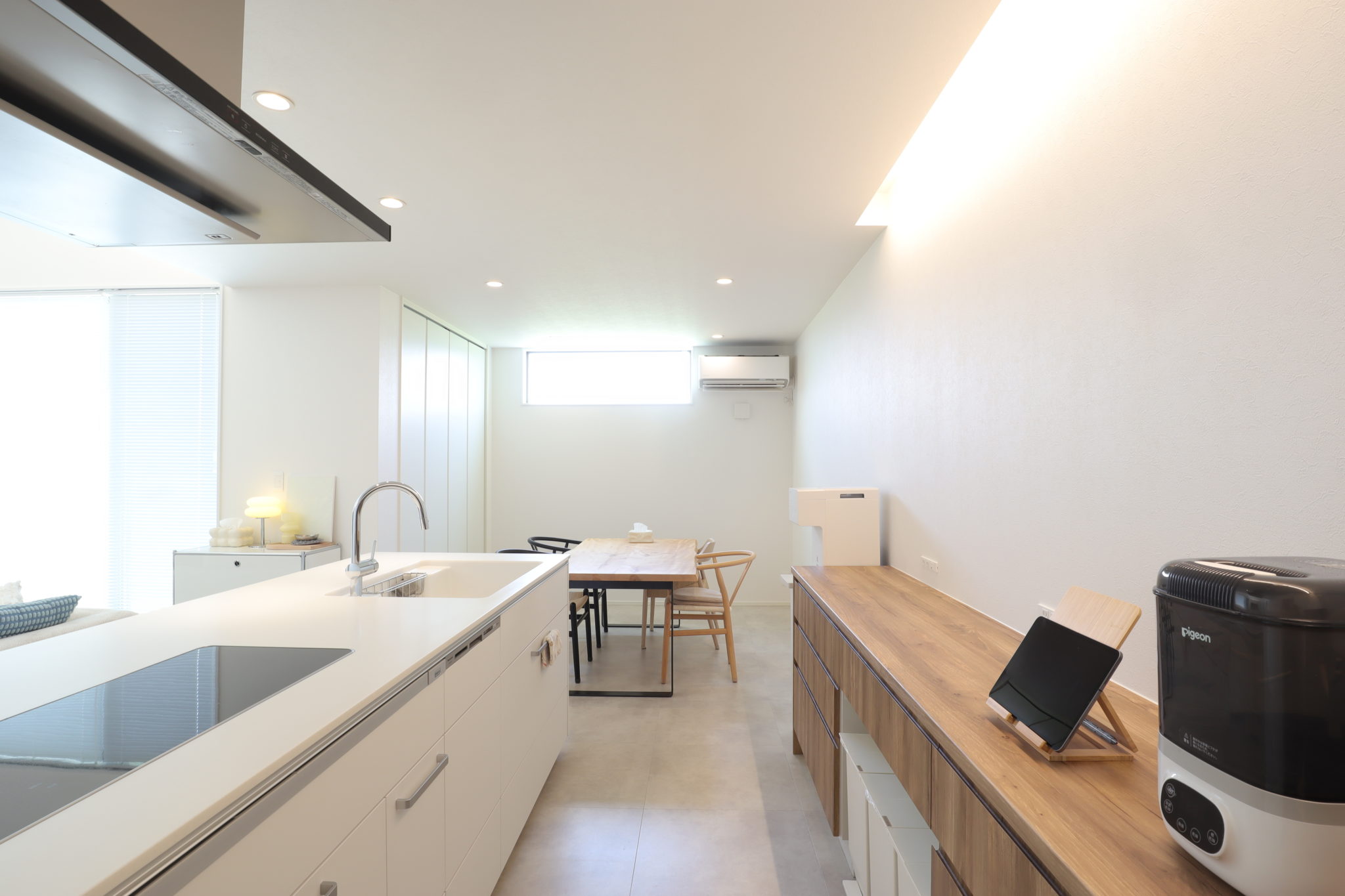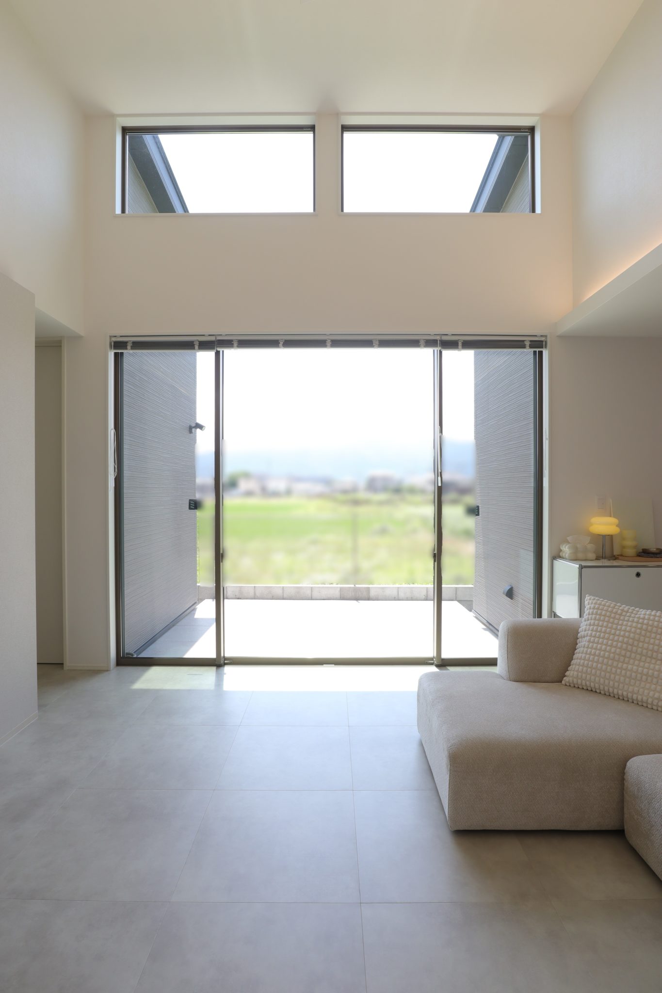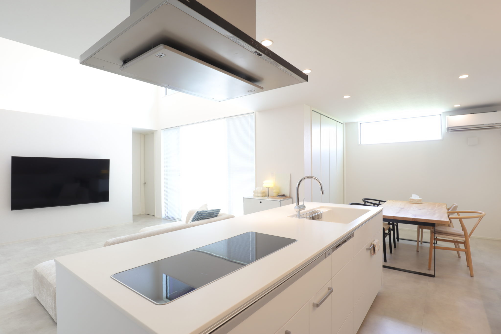 また、ホワイトインテリアでコーディネートしたLDKは、吹抜けや高窓をもうけたことでより開放的で洗練された空間に仕上がりました。