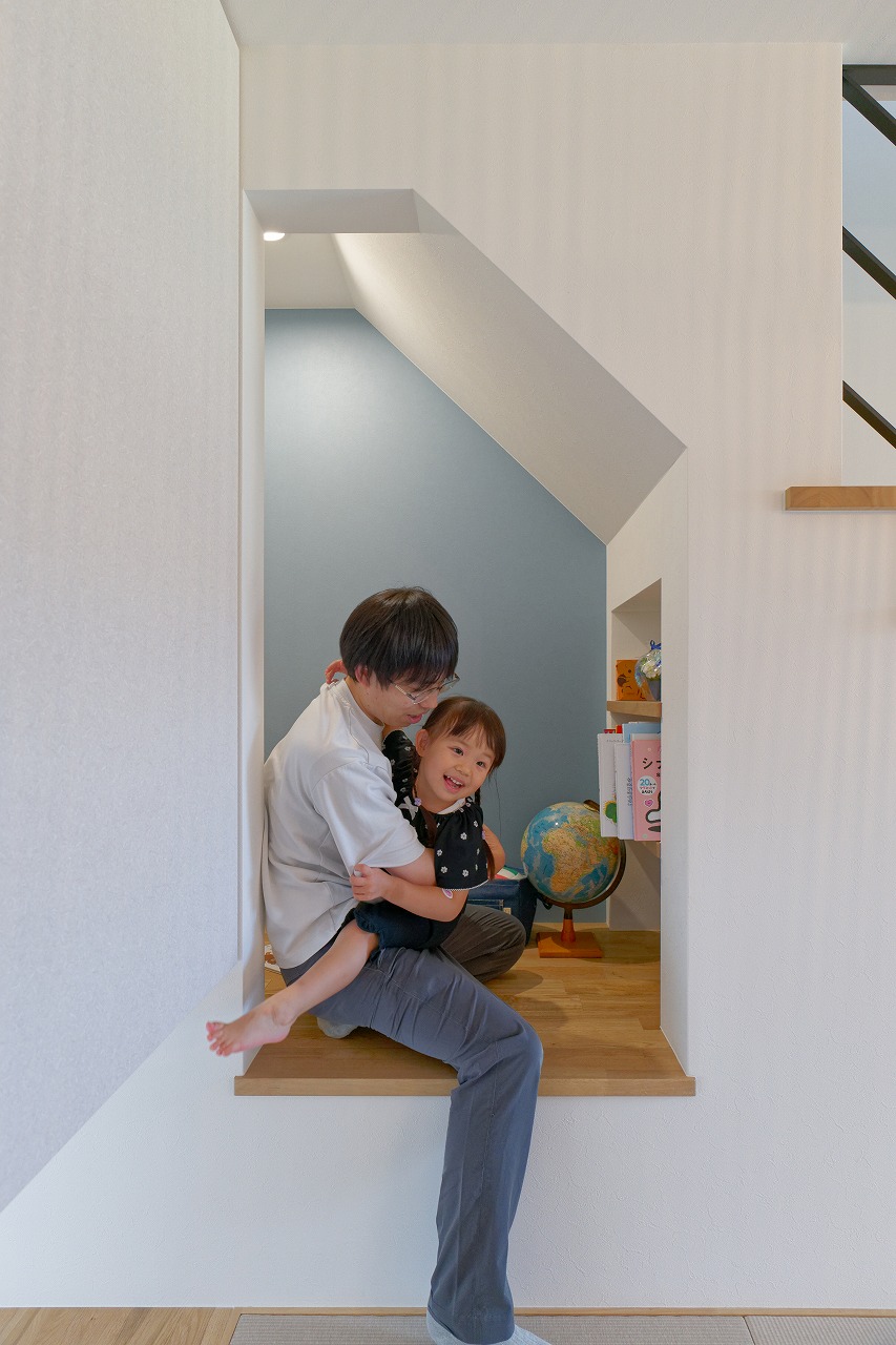 「子どもが帰ってきたいと思える家」をテーマに、デザイン性と暮らしやすさの両立にこだわった平屋の住まいが完成しました。便利な家事動線に加え、プライベートガーデンやヌックなど、家族それぞれが思い思いの時間を過ごせる空間を確保しています。さらに、各所に計画した収納やロフトは、季節物の荷物や災害備蓄品の保管にも活用でき、安心で快適な暮らしを支えます。