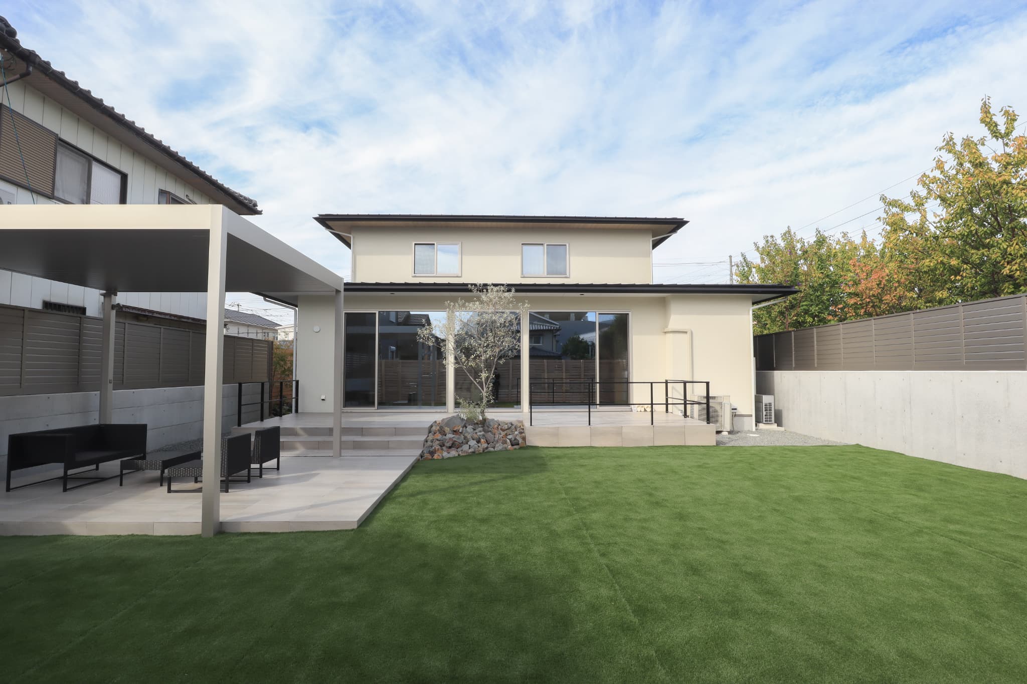 隣地側には高めの目隠しフェンスを設置し、プライバシーにも配慮しています。