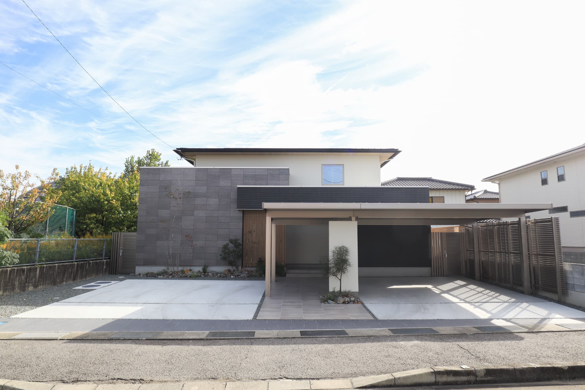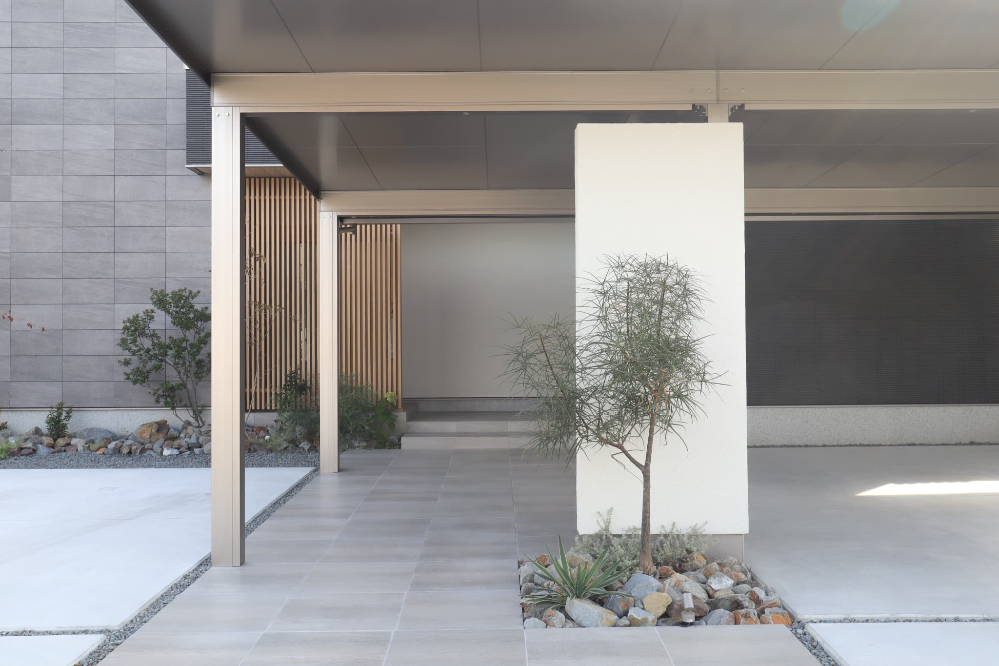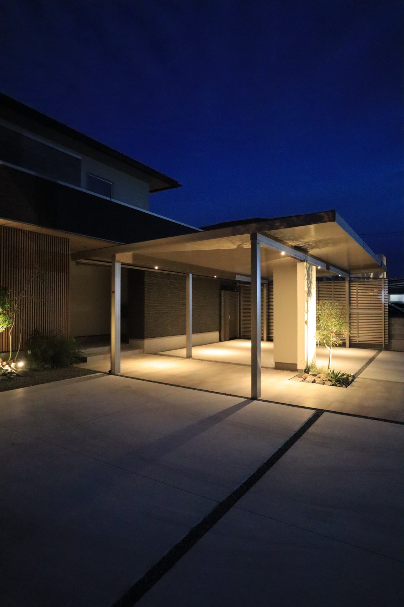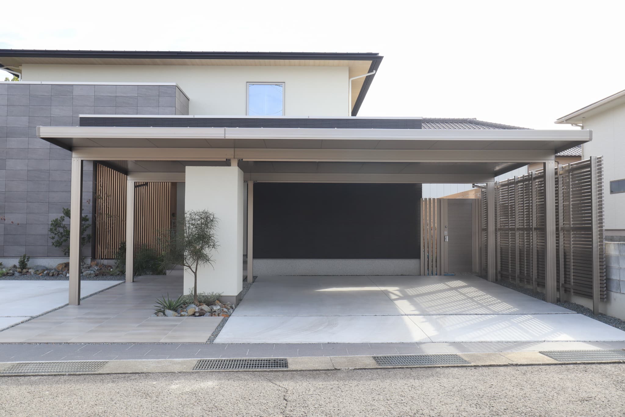 カーポートは車2台分に加えて、アプローチ部分まで延長。