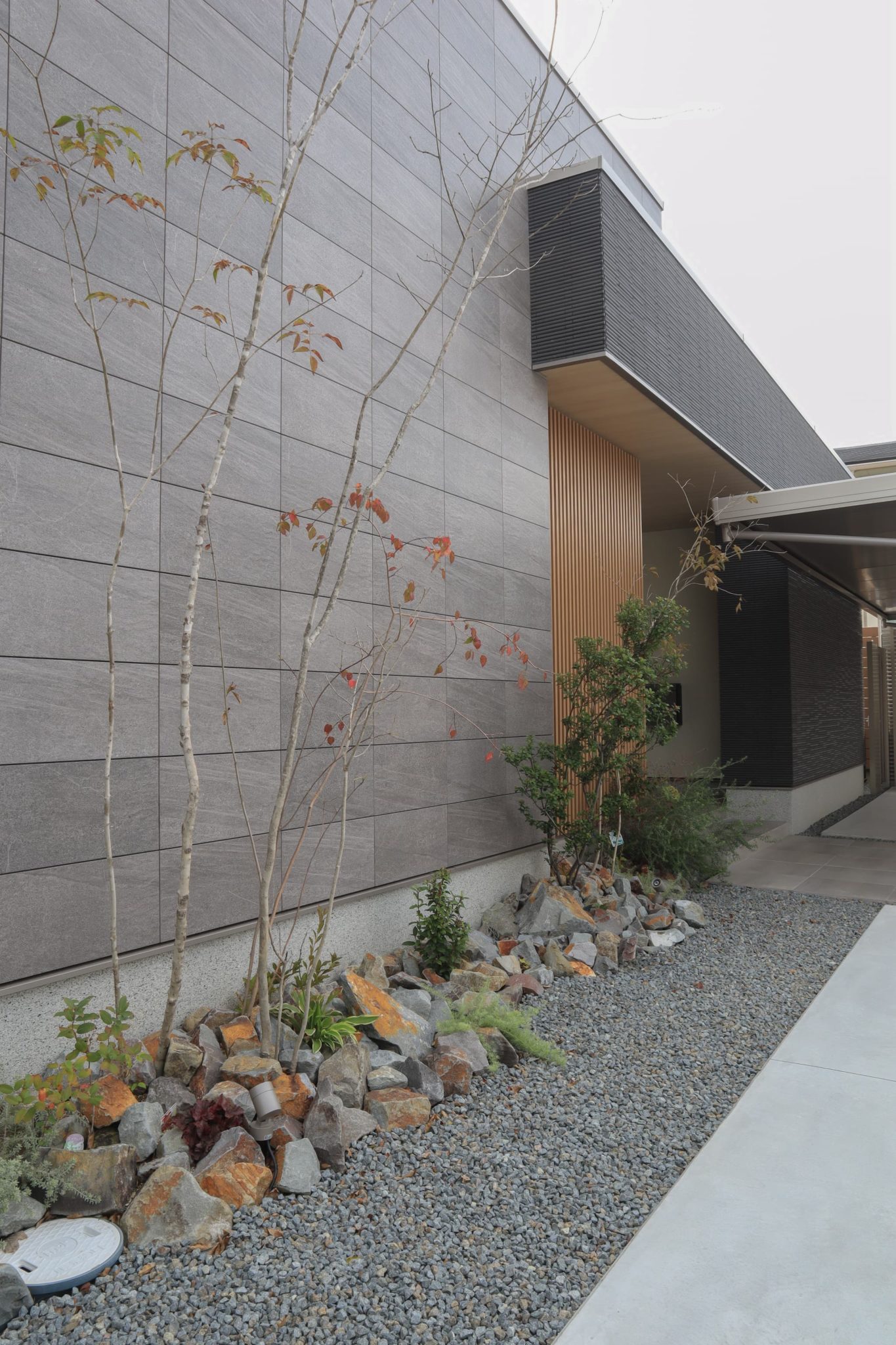 アオダモなどの落葉樹を中心に、四季の移ろいを楽しめるお庭に。