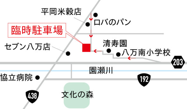・臨時駐車場:徳島市八万町大坪(弊社分譲地『ネクステージ八万町大坪』)