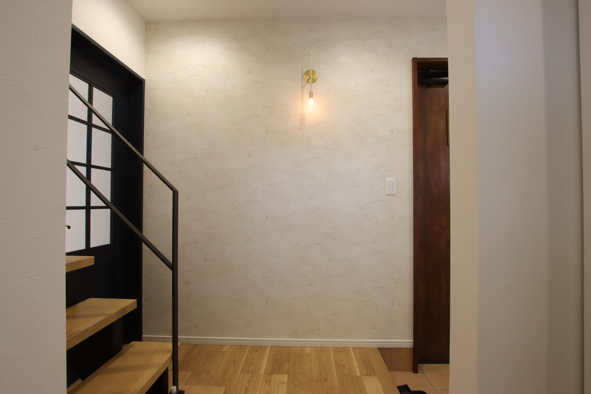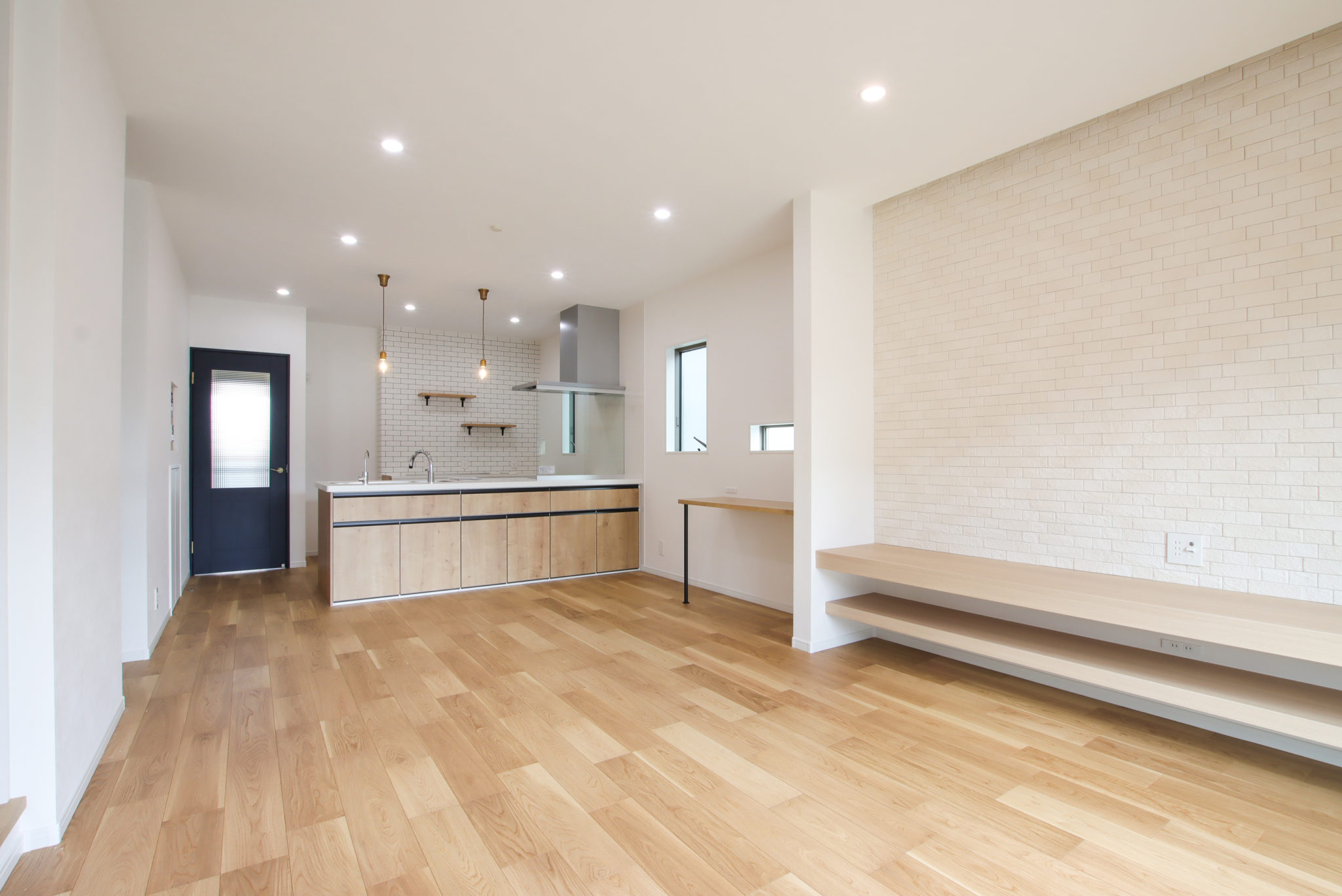 ナチュラルな空間の中にも、クロスや照明などで個性をプラス。貼り分けしたクロスや随所にあしらったタイルはお施主様のこだわりが詰まっています。