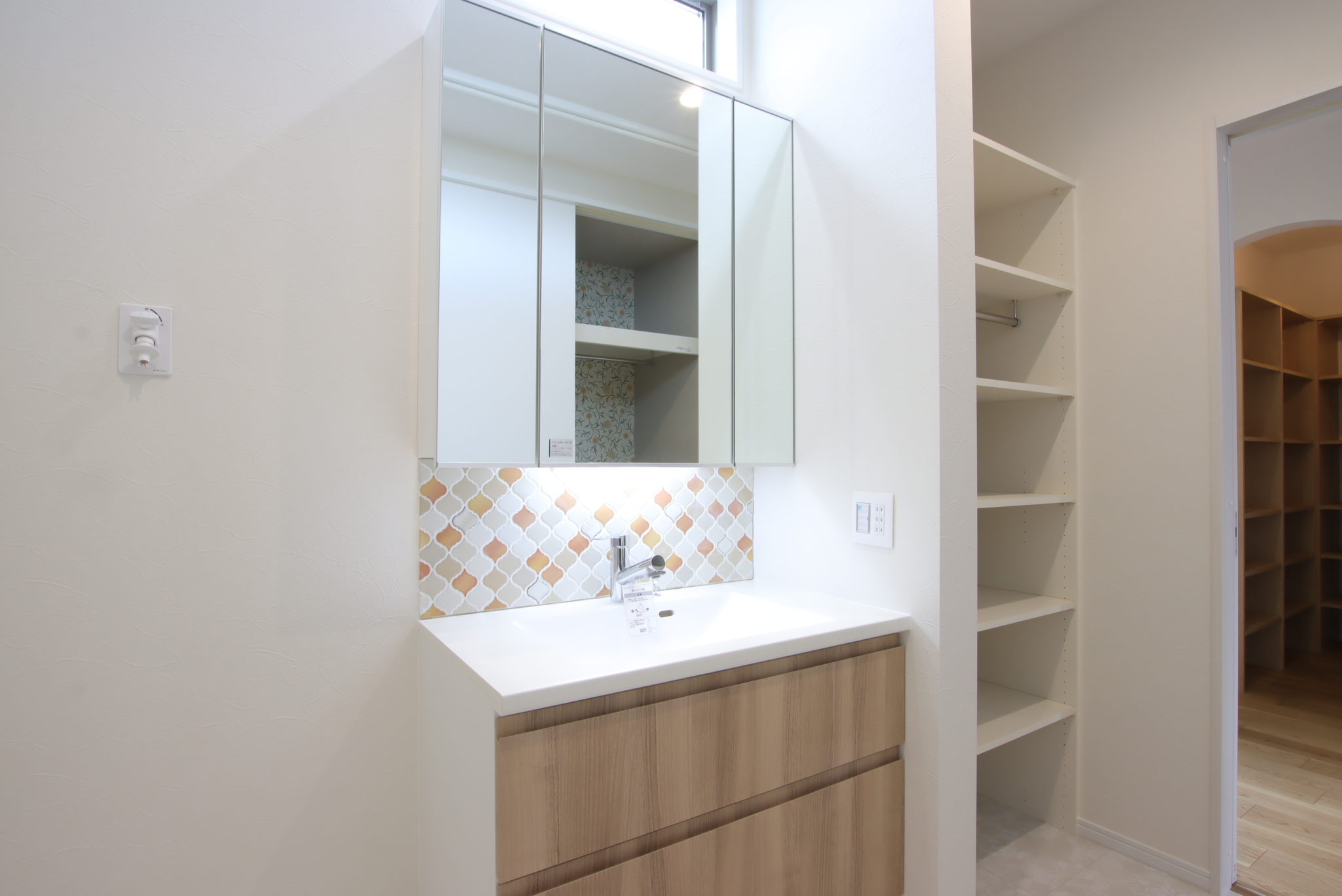 - 可愛らしいタイルをあしらった洗面台