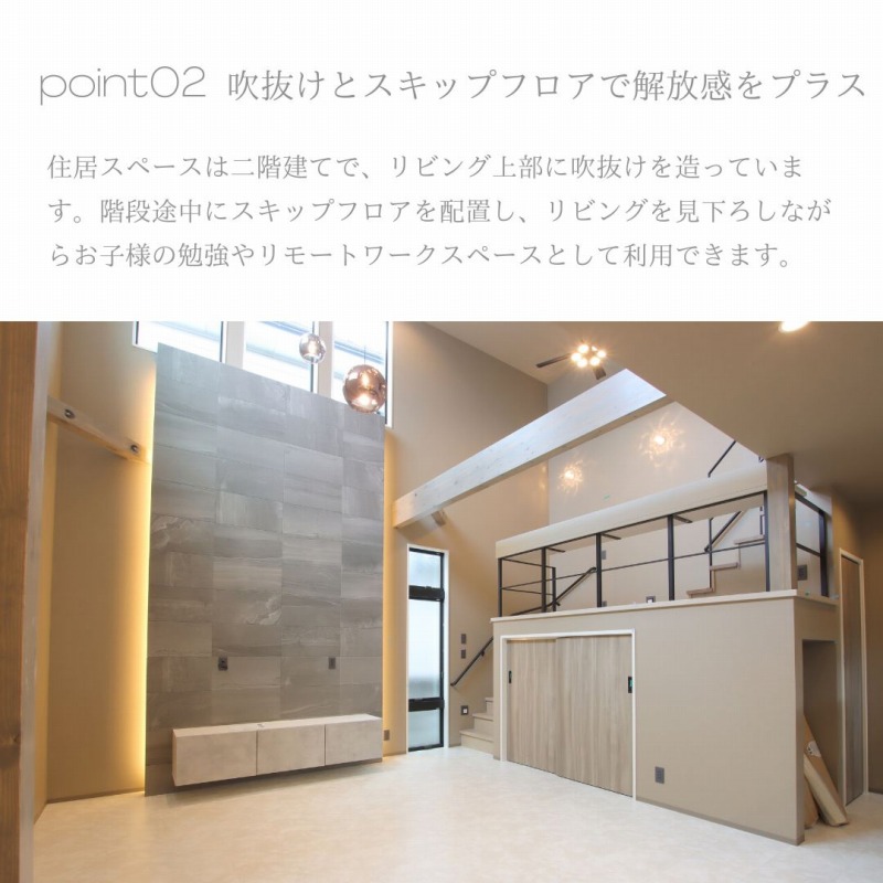 ・point.02 吹抜けとスキップフロアで解放感をプラス