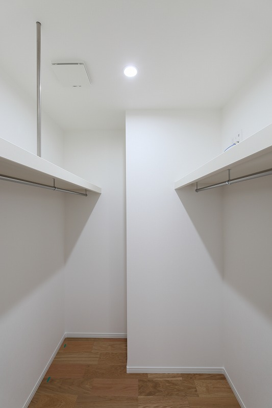 1階のファミリークローゼットを階段の近くに配置しているため、2階の寝室で起床してから着替えるまでがスムーズに。水廻りの近く配置している所も便利なポイント。
