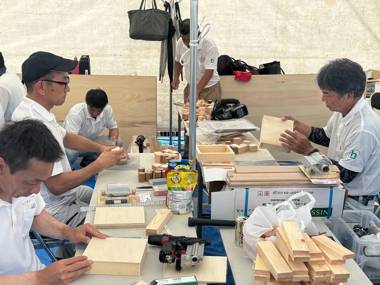 『kanon』のオープンイベントでは、大工さんがつくるはなおかオリジナルグッズ(木製コースター・積み木)や