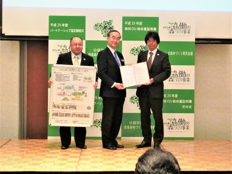 「とくしま協働の森づくり事業」の 平成29年度 第2回パートナー協定締結式 に出席しました。