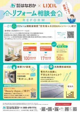 2月1日(日)、『LIXIL徳島ショールーム』にてリフォームの相談会を開催いたします!