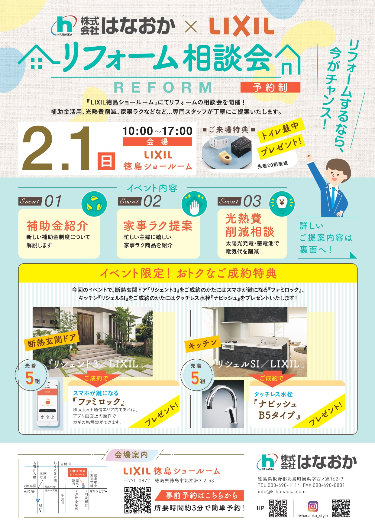 2月1日(日)、『LIXIL徳島ショールーム』にてリフォームの相談会を開催いたします!