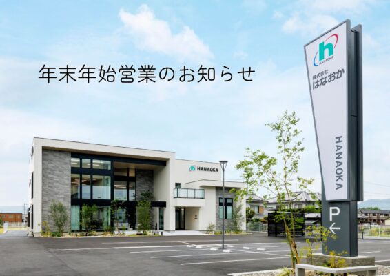 株式会社はなおかは、12月29日(月)~1月4日(日)年末年始のお休みを頂戴いたします。