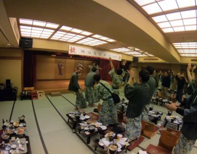 夕食は三谷温泉にておいしい料理と宴会を楽しみました。