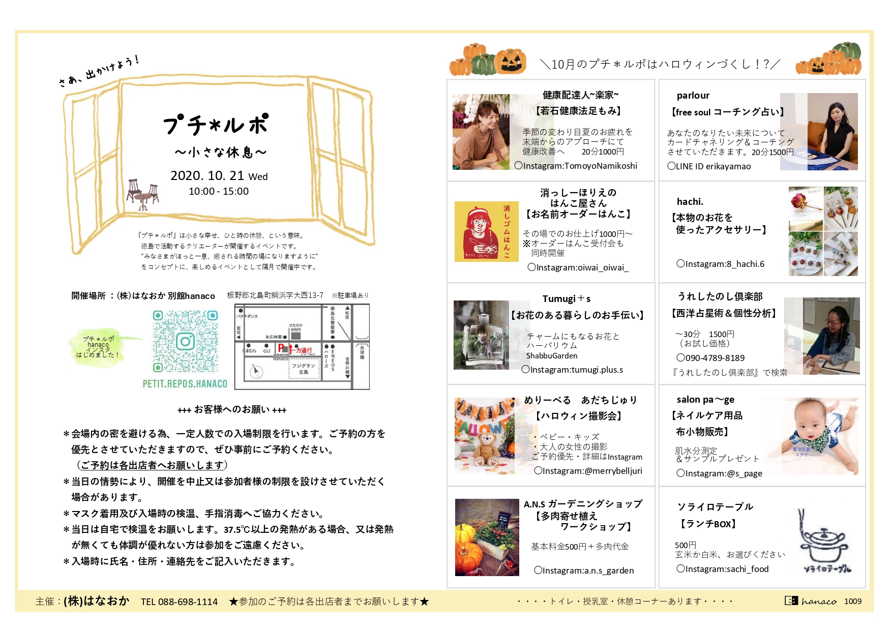 感染症対策のもと、リラックス、美容、ものづくり、など 徳島県内外で活躍するクリエイターとのひと時をお過ごしください