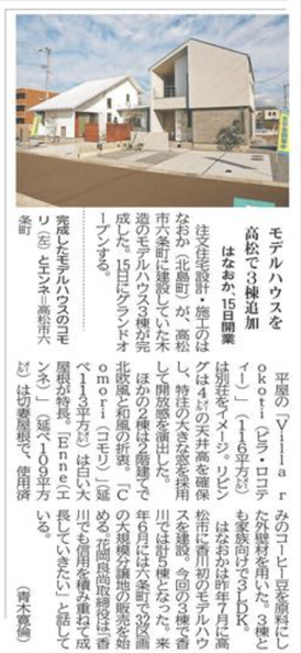 11月8日(土)付、『徳島新聞』に高松市六条町モデルハウスオープンの記事が掲載されています。