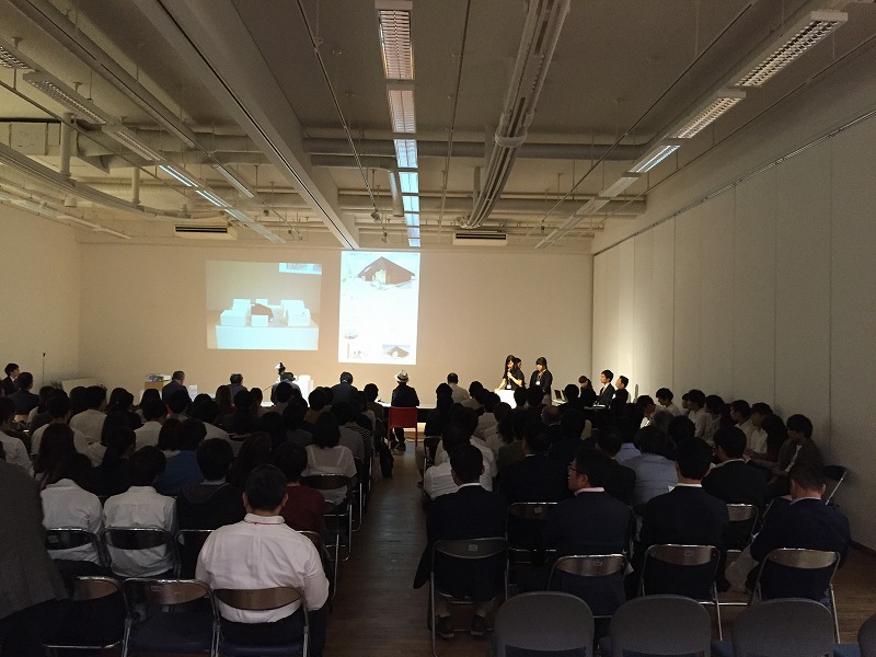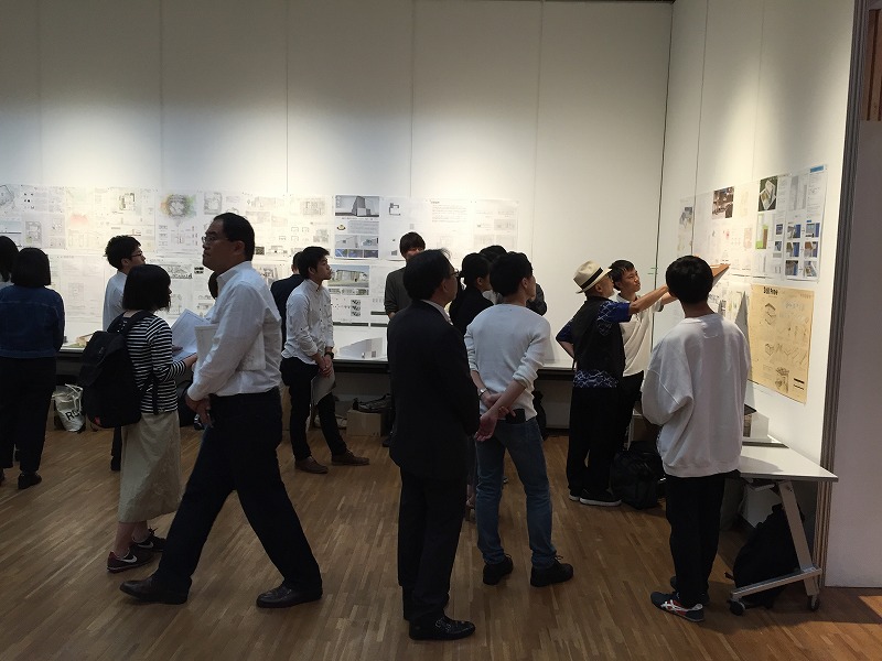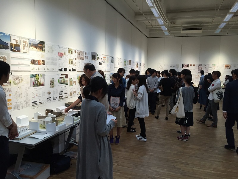 熱い想いと大胆なアイデアが込められた模型やプレゼンボードが並び、見ごたえある作品ばかりでした。午前中に、著名な設計家の先生方で構成された審査委員が10作品を選考し、午後には選考された学生によるプレゼンテーションがありました。