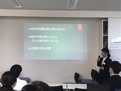 最終日、5日目にはそれぞれの部署ごとの課題と個人の課題、感想の発表をしていただきました。