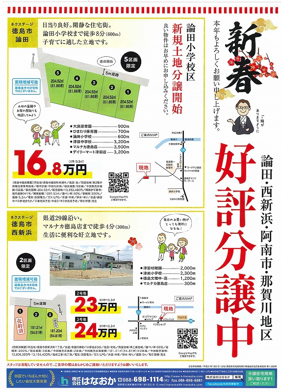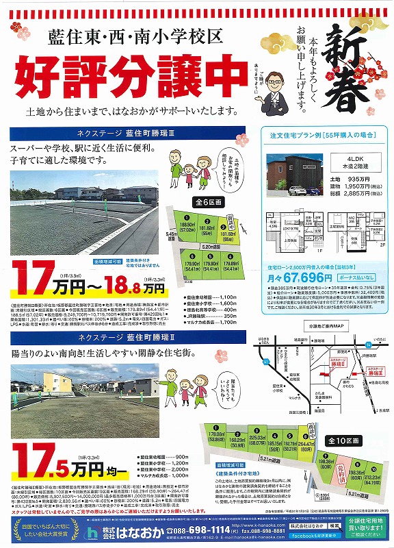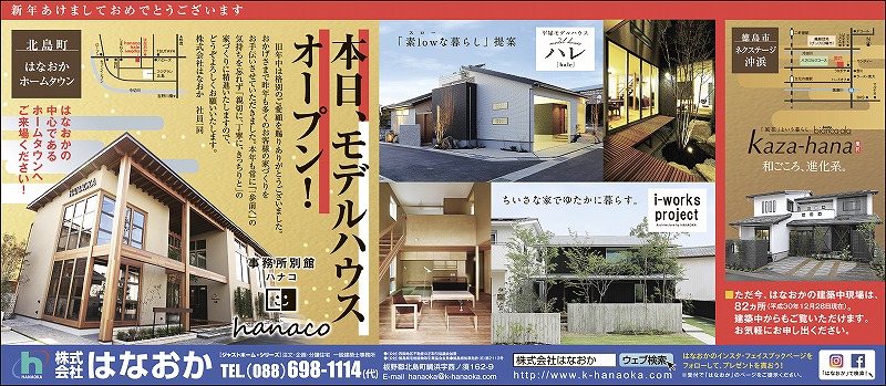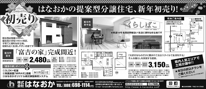 1月5日(土)、徳島新聞全県版に広告と折込チラシ(エリア別)をしています。