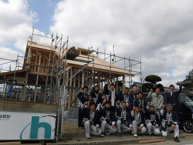 ご家族も駆けつけ、楽しい上棟式になりました。