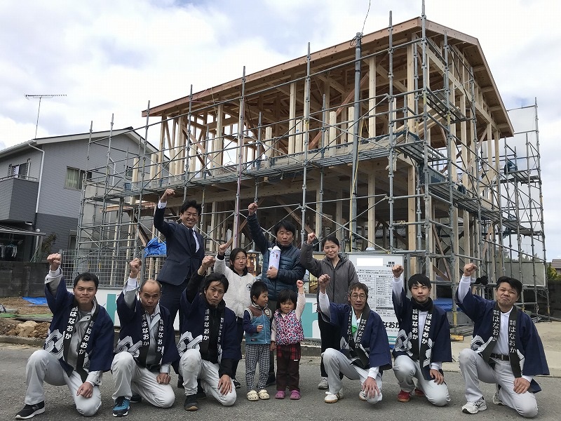 ご家族も駆けつけ、賑やかな上棟式になりました。