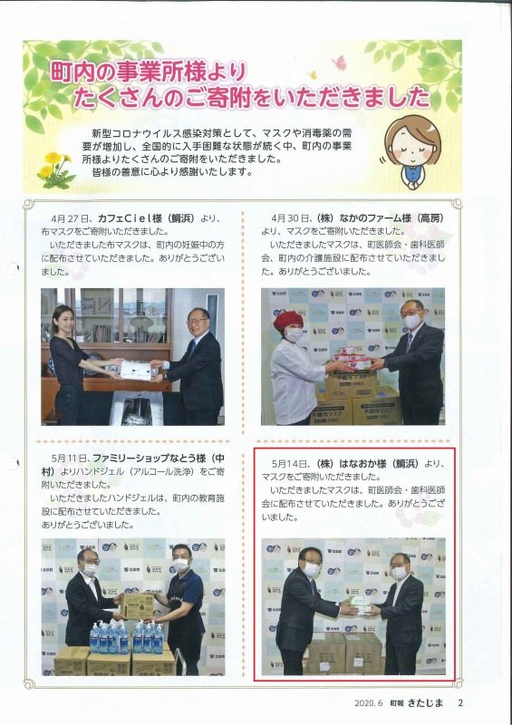 【各町役場広報】マスク寄付の様子が掲載されています