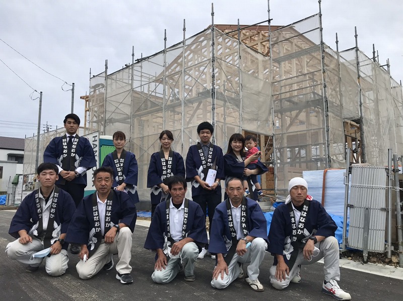 ご家族も駆けつけ、賑やかな上棟式になりました。