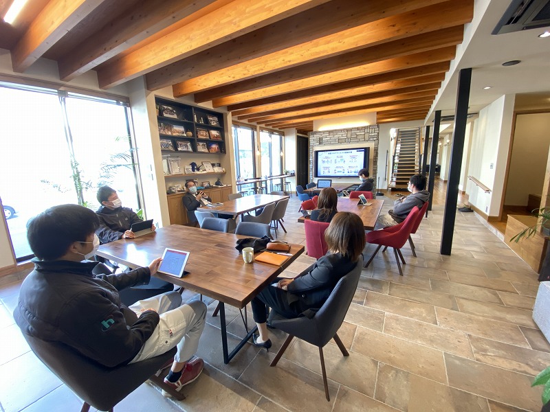 11月5日(木)、全体会議がありました 2020.11.05 11月5日(木)、全体会議がありました。 新型コロナウイルス感染対策として、ZOOMを用い、各課ごとに分かれて会議に参加しました。 11月21日(土)、22日(日)に開催する見学会についての概要発表、新入社員の紹介、各課連絡事項などがありました。 最後に、前回の『はなおか動く』のまとめを行いました。 share 前の記事へ 次の記事へ 一覧へもどる