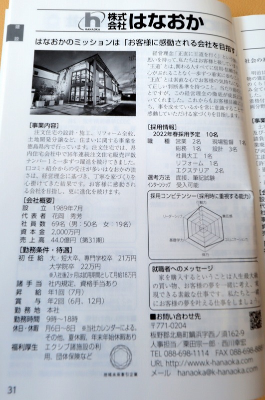 徳島県商工労働観光部が発行している『2022とくしま企業ガイド』に掲載されています。
