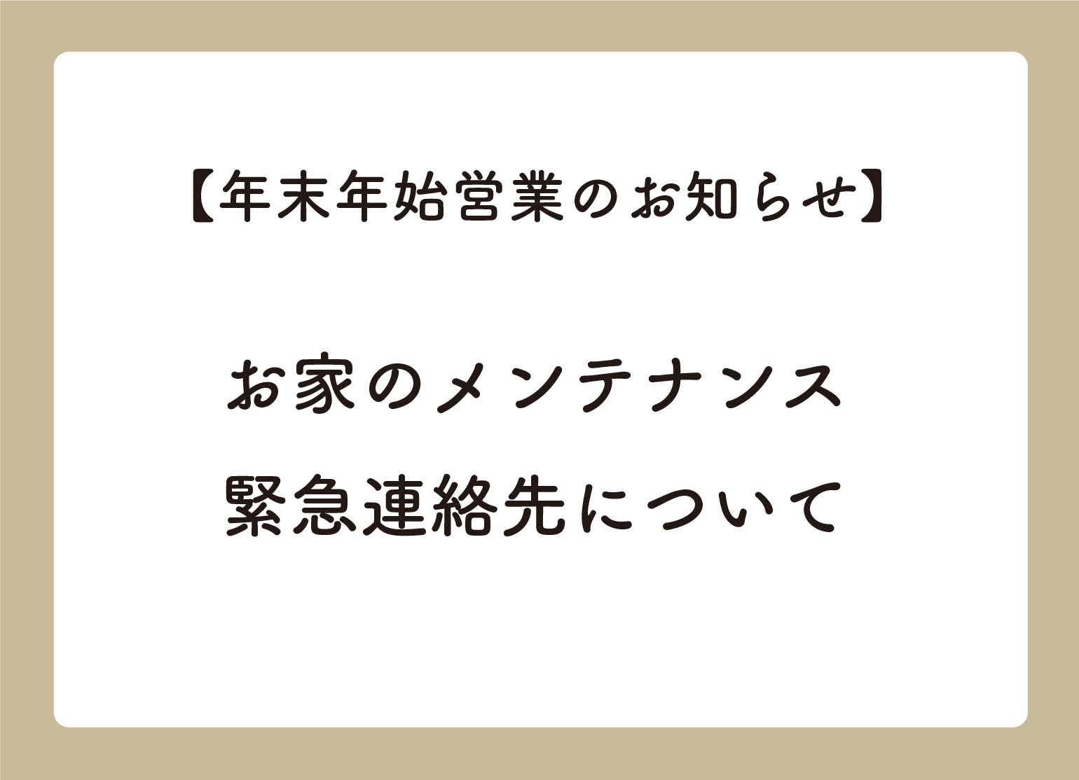 年末年始休業中のメンテナンス連絡先について