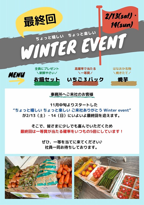 “ちょっと楽しい ちょっと嬉しい ご来社ありがとう Winter event”です。