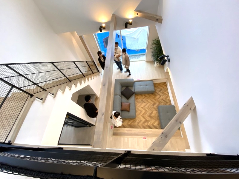 テーマは北欧フレンチ。ブルーのキッチンの扉色が空間のアクセントとなったLDKはピットリビングを採用。ヌックや吹抜け、ヘリンボーンの床など細部にまでこだわたリビングになっています。また、2階のバルコニーを広く計画してバルコニーガーデンを採用。家中くまなく楽しめるアイデアが詰まったお家になっています。ぜひ、この機会にご覧ください。