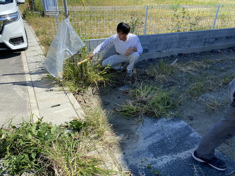 現場での印象を良くするために各現場の除草や美化に努めました。