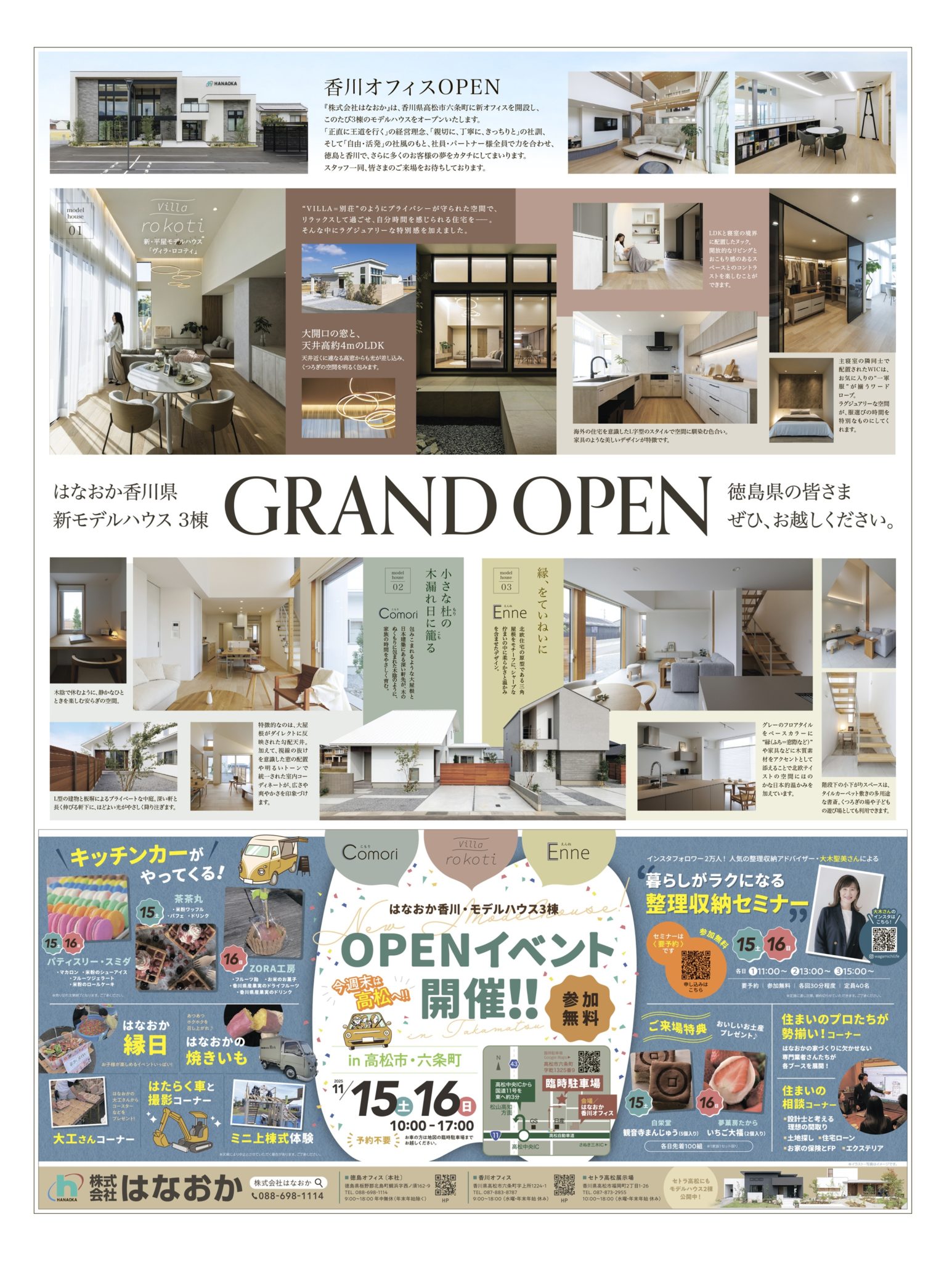 11月13日(木)付け『徳島新聞』の最終面にて、香川でオープンする新モデルハウス3棟の記事とイベントのご案内を掲載しています。