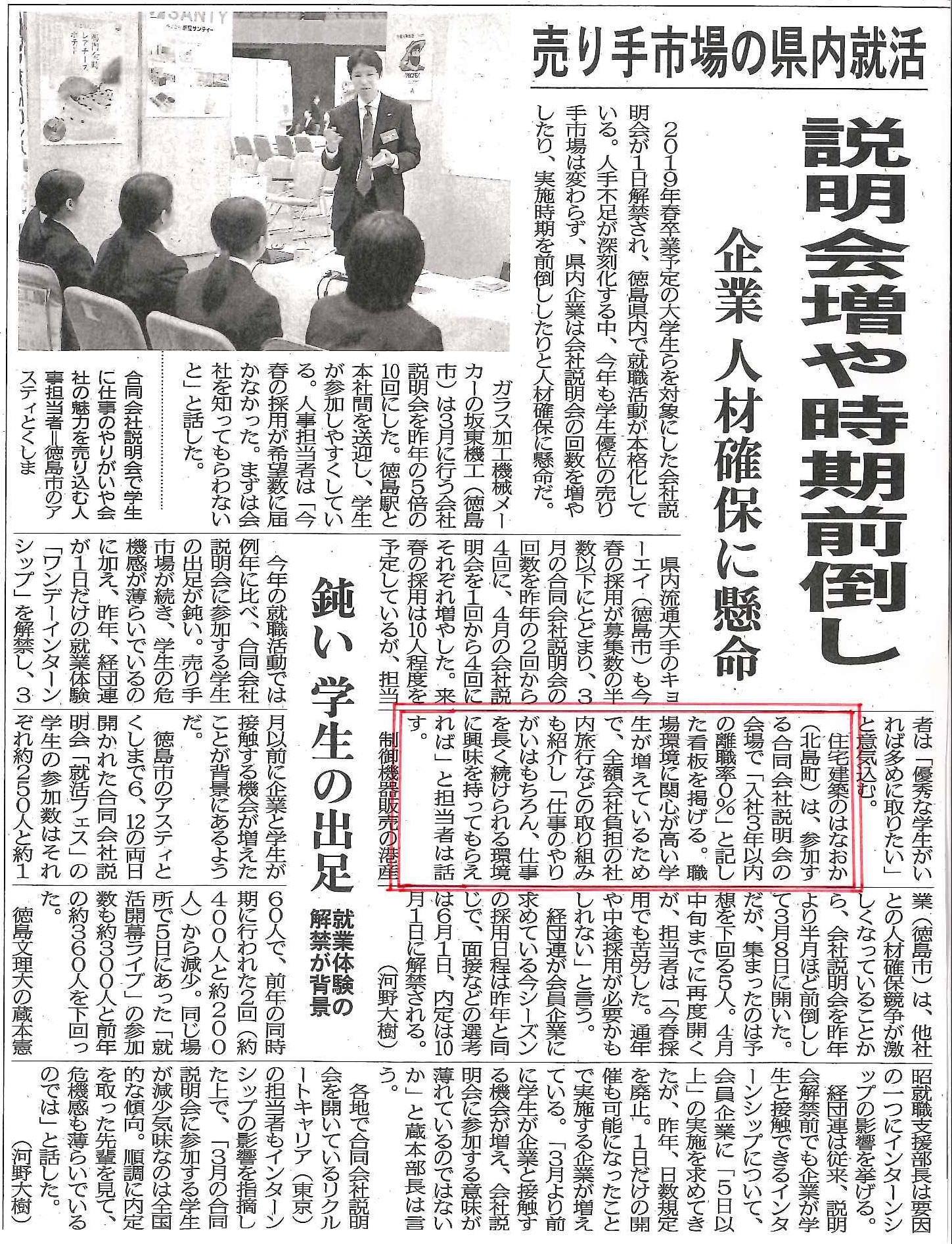 3月20日付、『徳島新聞』に人事担当者のインタビューが掲載されました。 2018.03.20 3月20日付、『徳島新聞』に人事担当者のインタビューが掲載されました。 share 前の記事へ 次の記事へ 一覧へもどる