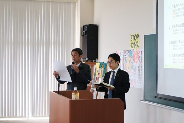 また、徳島県建設労働組合 書記次長の森本様より、安全講話および安全教育についてご講義いただき、安全に対する意識を改めて高める貴重な機会となりました。