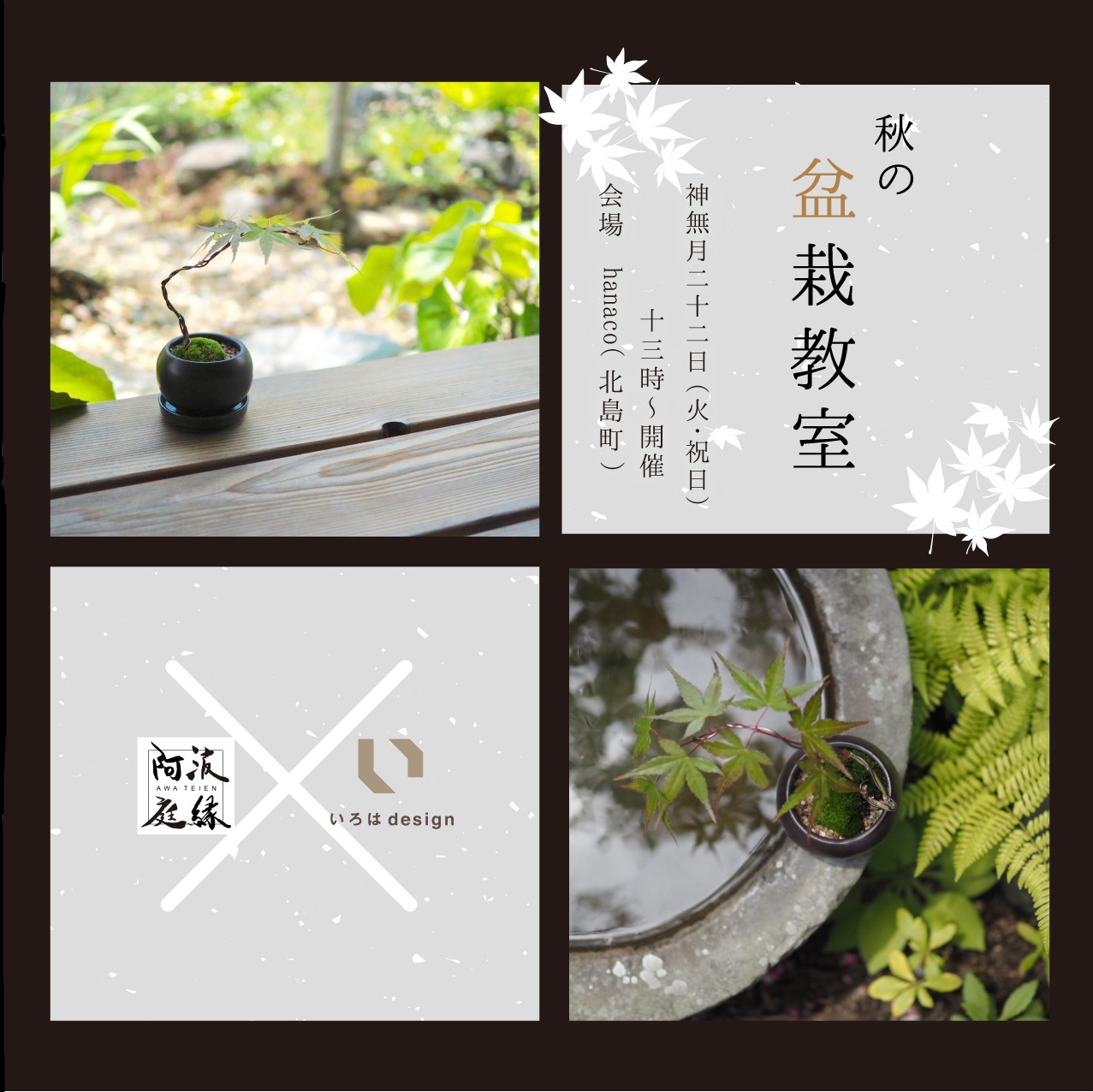 今回は、阿南市で造園業をされている阿波庭縁さんのご協力のもと、オリジナルの盆栽をつくるワークショップを開催いたします。 紅葉、銀杏、松などから、ご自身の好みの樹種を選んで、盆栽をつくっ