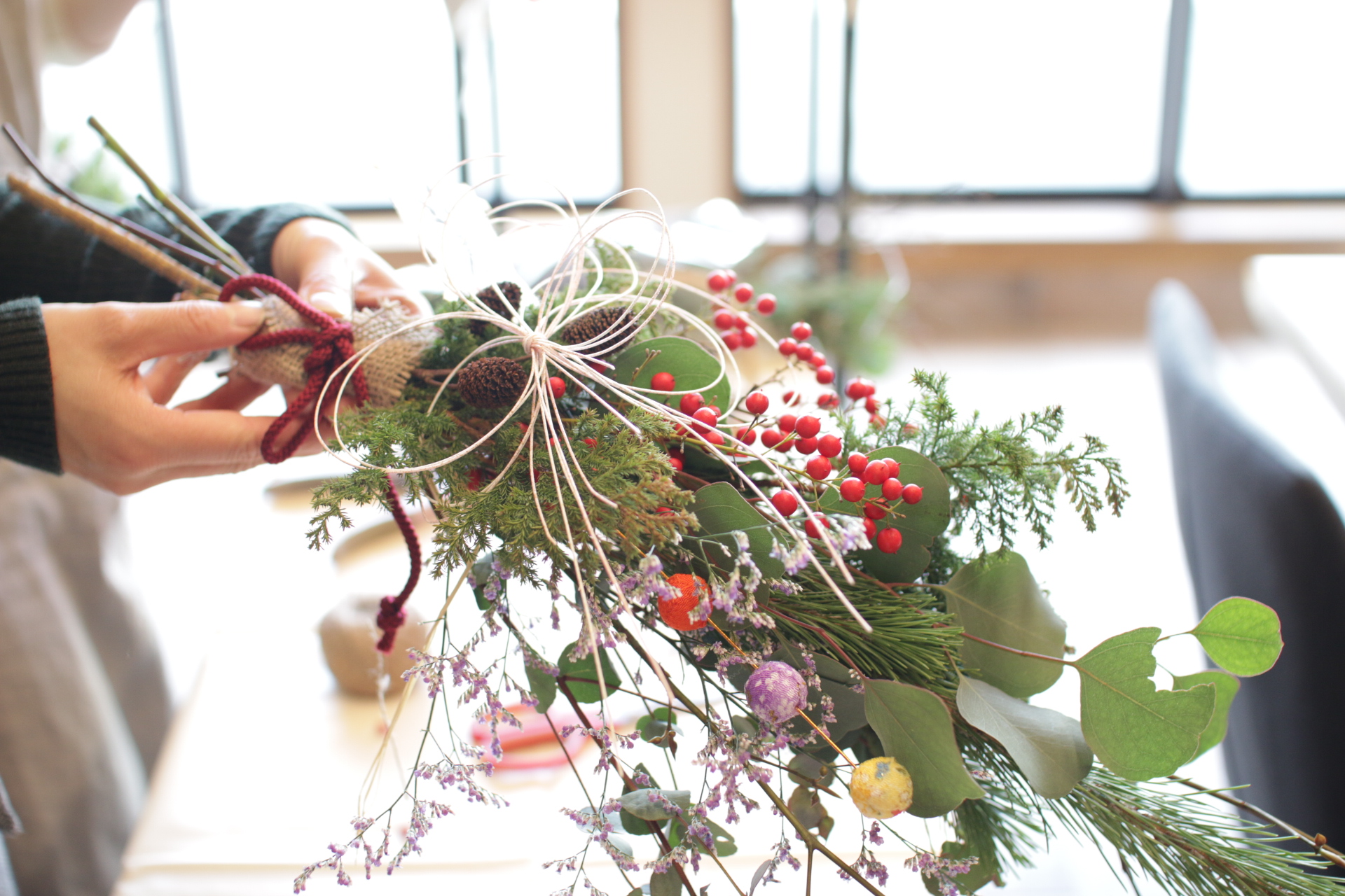 お正月スワッグの作り方を教えてくださりました!