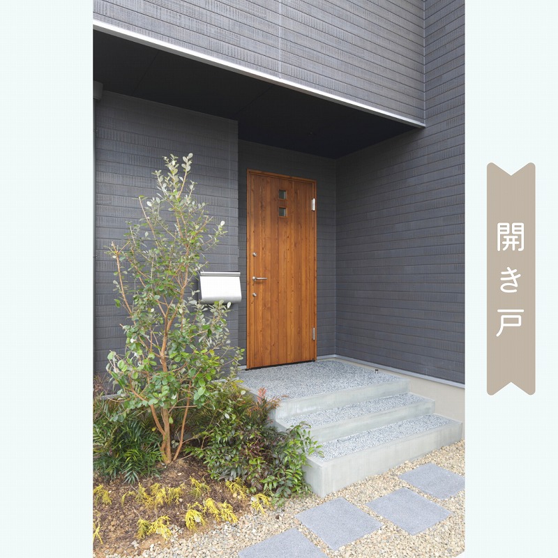 続いては玄関について!玄関ドアで多く採用されている開き戸。デザインのバリエーションが豊かで、玄関ドアといえば開き戸というイメージを持たれる方も多いのではないでしょうか。