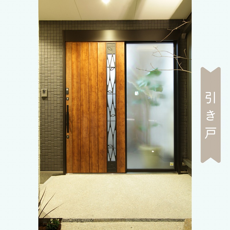 また、引き戸の場合片側をガラスにすることが多く、玄関に光が入って明るくなる効果があります。暗くなりがちな北向き玄関にもオススメ!