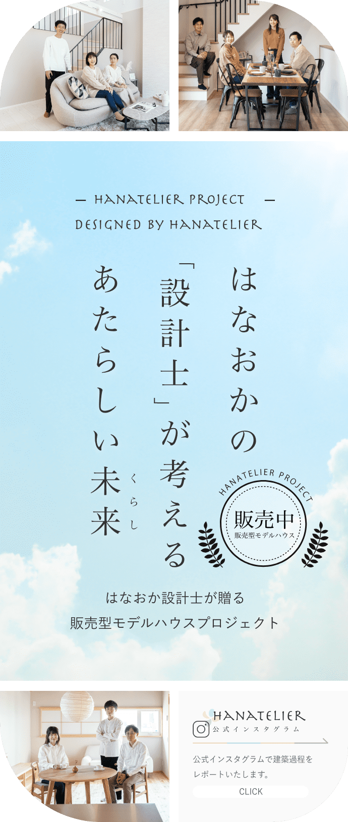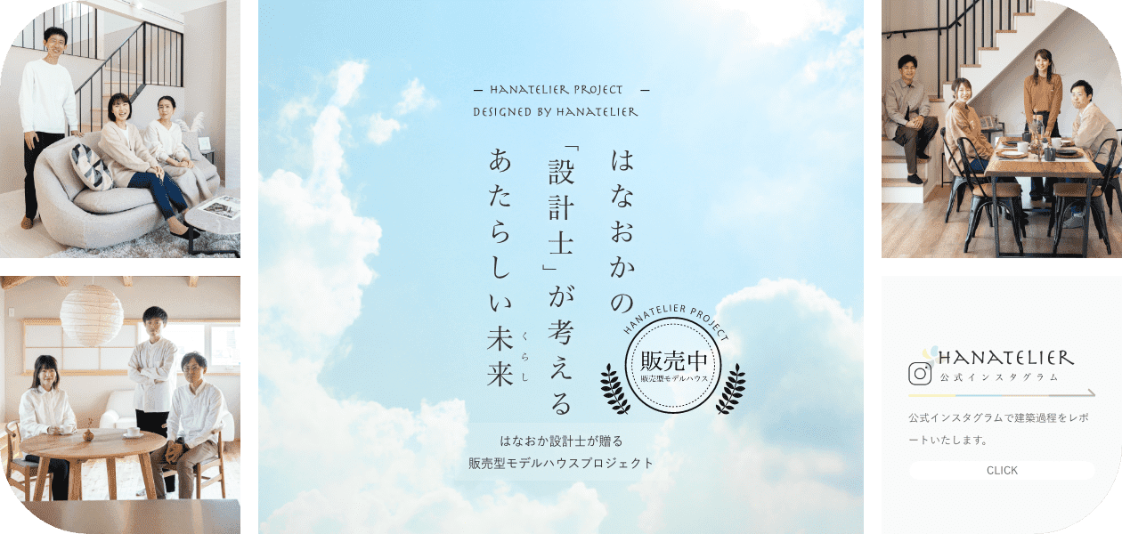 年間500棟近くのプランをご提案する経験豊富な『はなおか』の設計士たちが中心となって進める販売型モデルハウスプロジェクト。