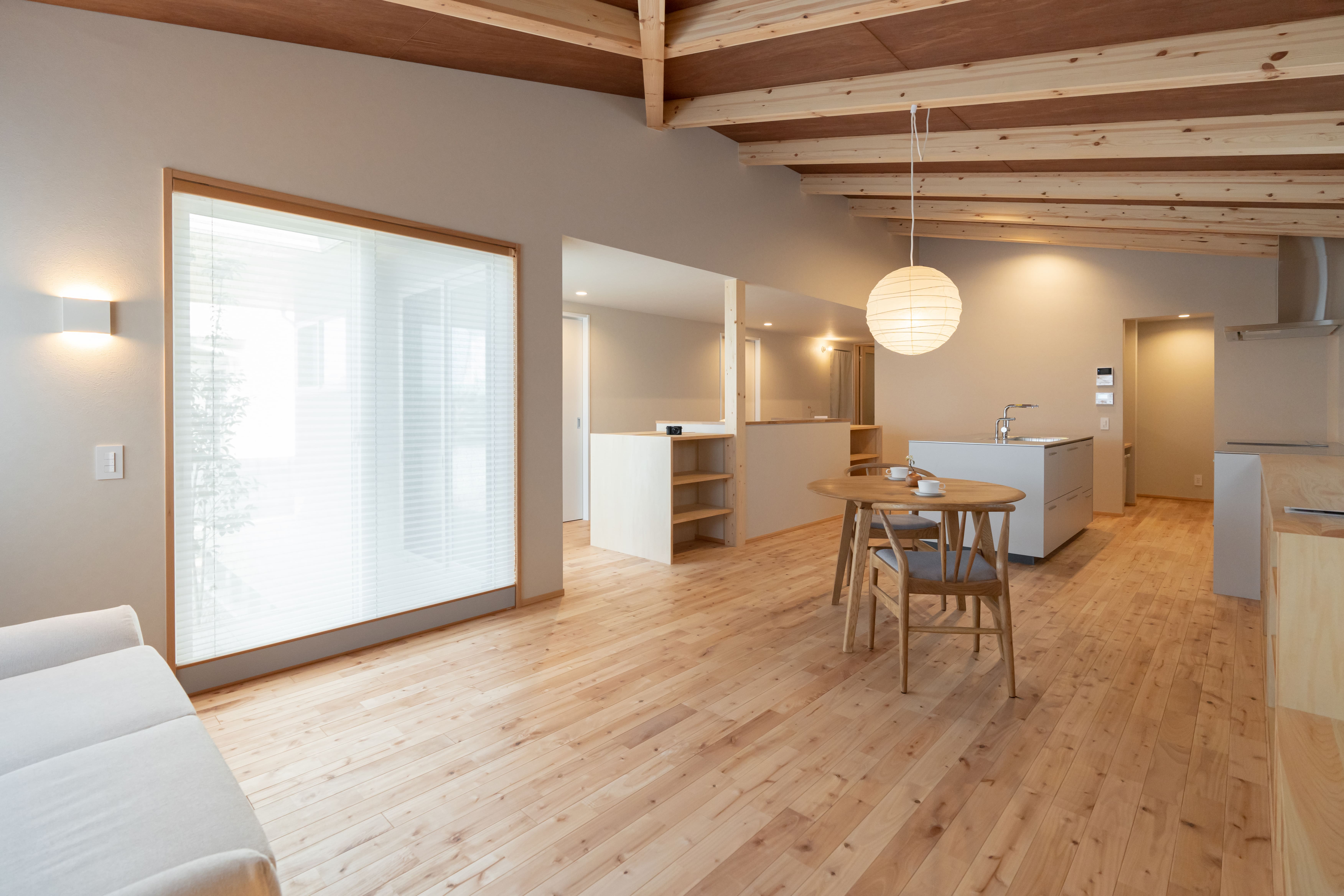着心地の良い衣服を纏うように住まい手になじむ木の風合いを生かした平屋住宅です。