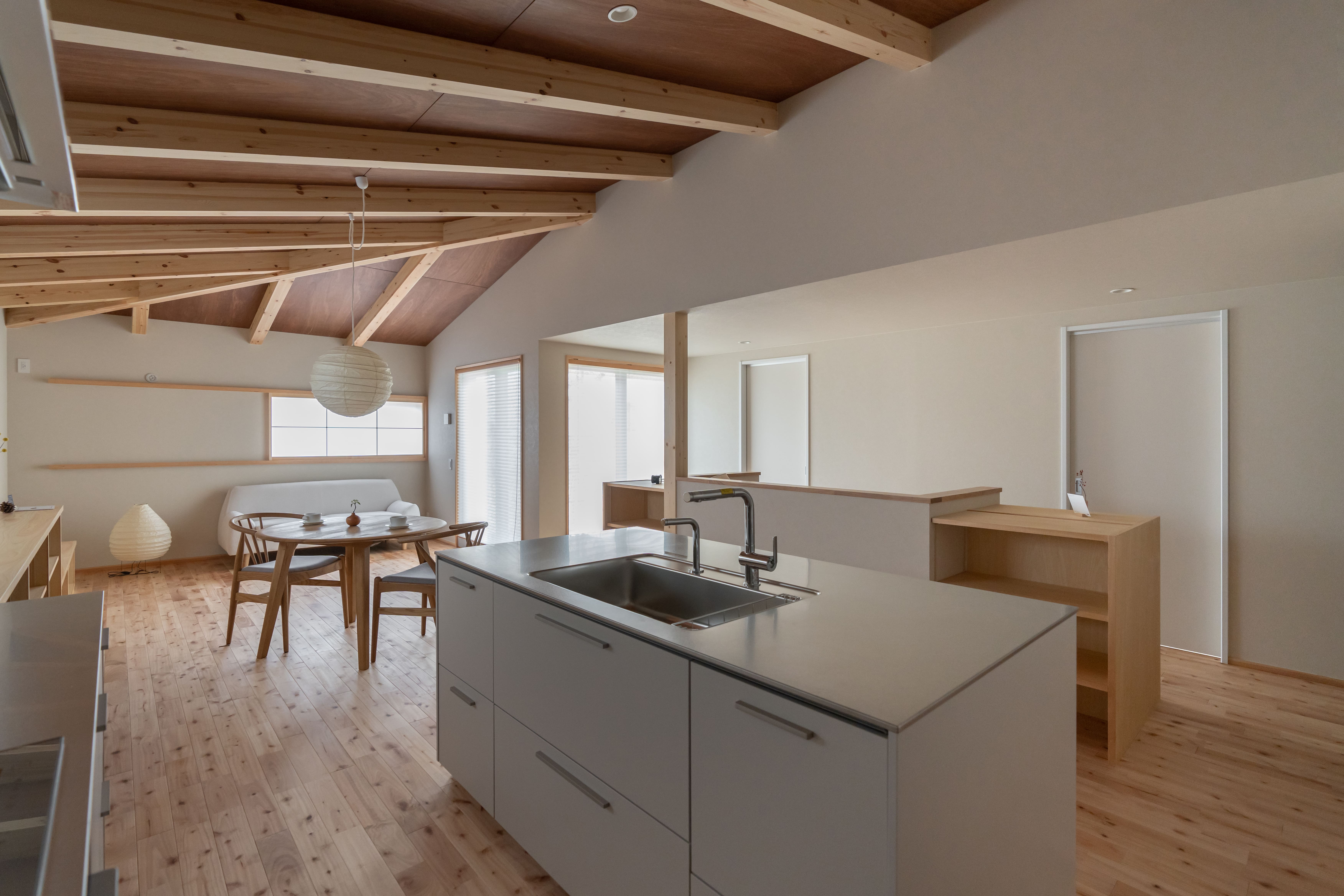 気持ちの良い空間にするために、さまざまな設計技法を取り入れています。木の風合いを感じ、まわりと調和するおおらかな住まいをご体感ください。